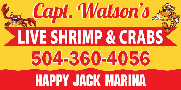 Introducing Captain Watson's Live Shrimp & Crabs at Happy Jack Marina. Providing the freshest catches straight from the dock, including live shrimp for fishing and crabs for boiling, this new addition guarantees an experience you wont forget! For inquiries, call 504-360-4056.